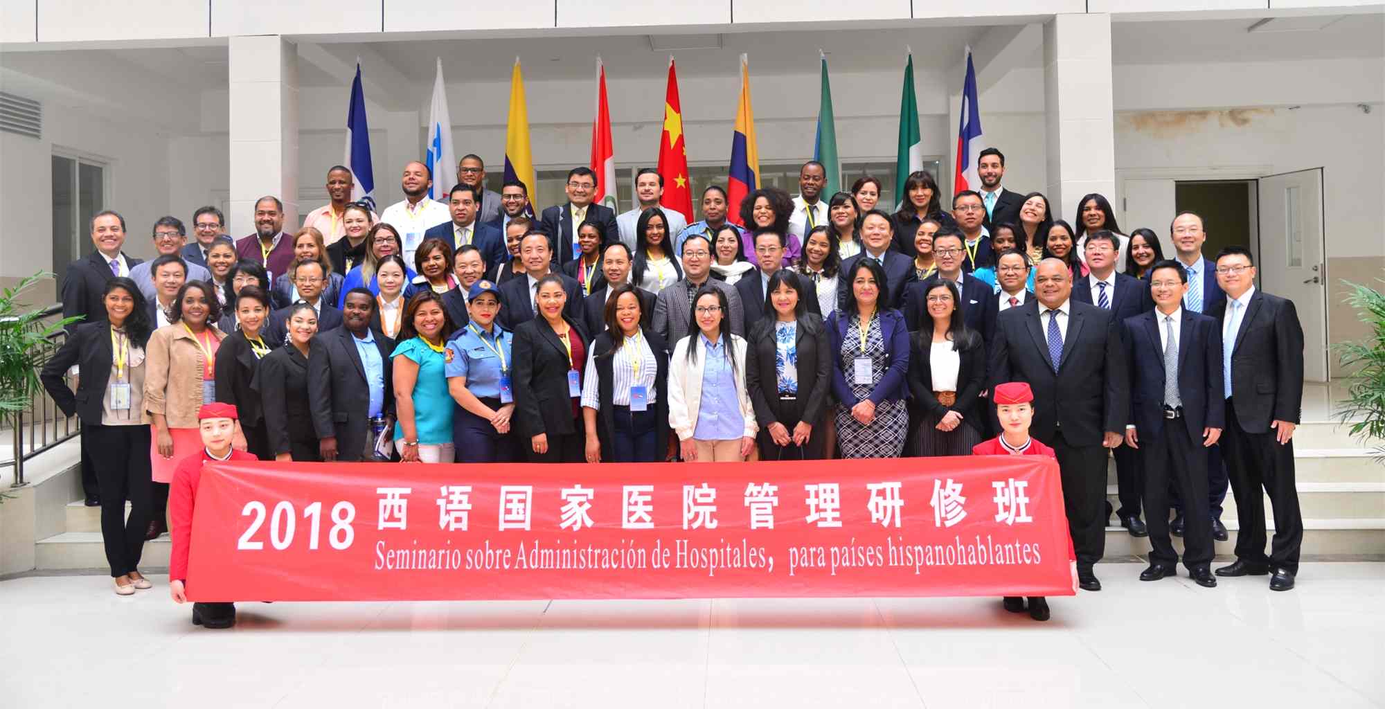 10月18日,由商务部国际商务官员研修学院主办、中国国际医药卫生有限公司承办的2018年西语国家医院管理研修班开班仪式在凤凰联盟官方网站东风总医院举行。来自智利、秘鲁、巴拿马、墨西哥、多米尼加、委内瑞拉、厄瓜多尔、赤道几内亚8个国家的医疗卫生部门官员及当地医疗专家,共计49名参加本次研修。
